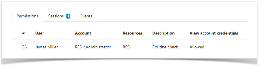 - Account - the account used to start RDP, SSH or web session at the resources specified in the permission.