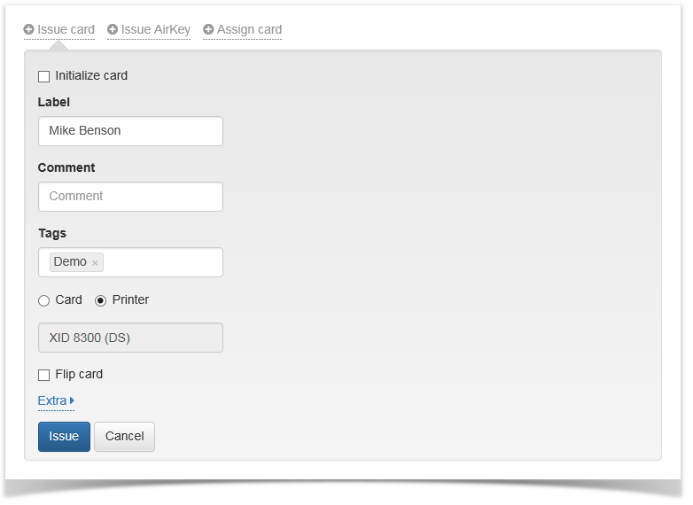 the card. In this case the card is placed into printer source tray and the card gets certificates written and image printed on according to the defined print template while being issued.