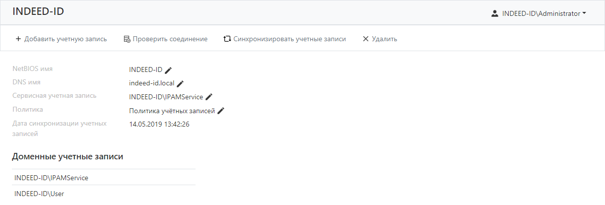 Все добавленные доменные учётные записи отображаются на вкладке Доменные учётные записи.