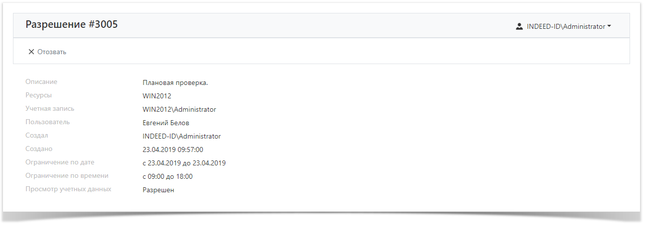 - Создал - учётная запись администратора Indeed PAM.