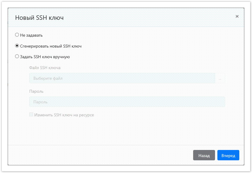 Задать SSH ключ вручную + Изменить SSH ключ на ресурсе