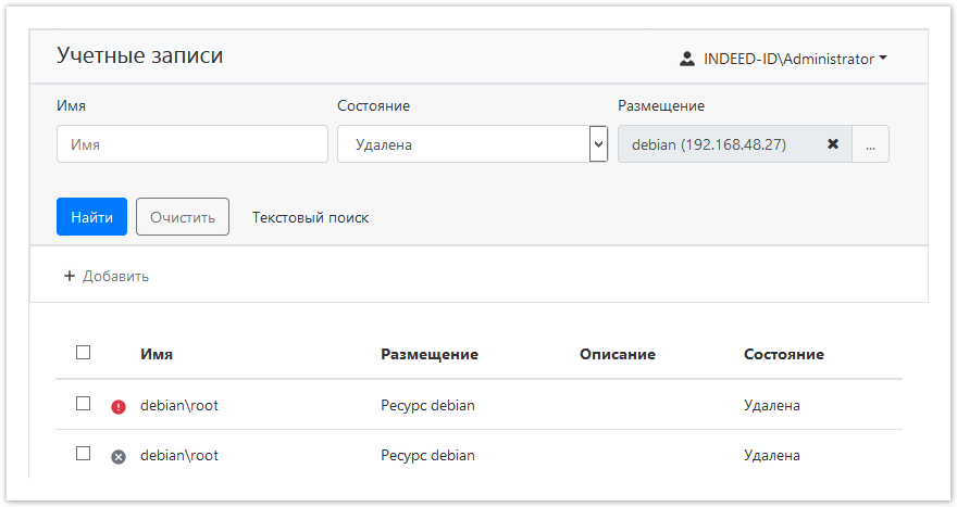 - Введите Имя учётной записи и выберите Состояние - Удалена.