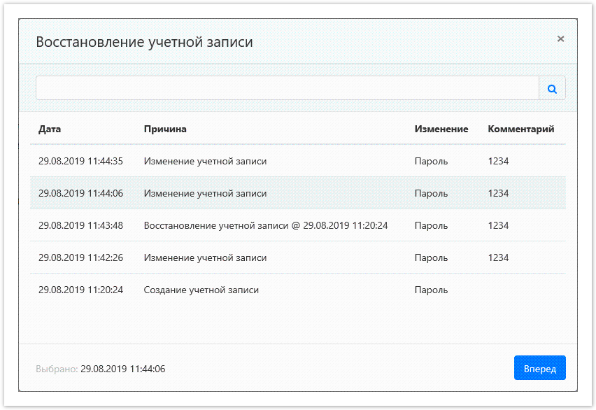Массовое управление учётными записями может быть выполнено только при наличии сервисного подключения на тех ресурсах или доменах, чьи учётные записи выбраны для управления, так как для каждой будет сгенерирован случайный пароль.