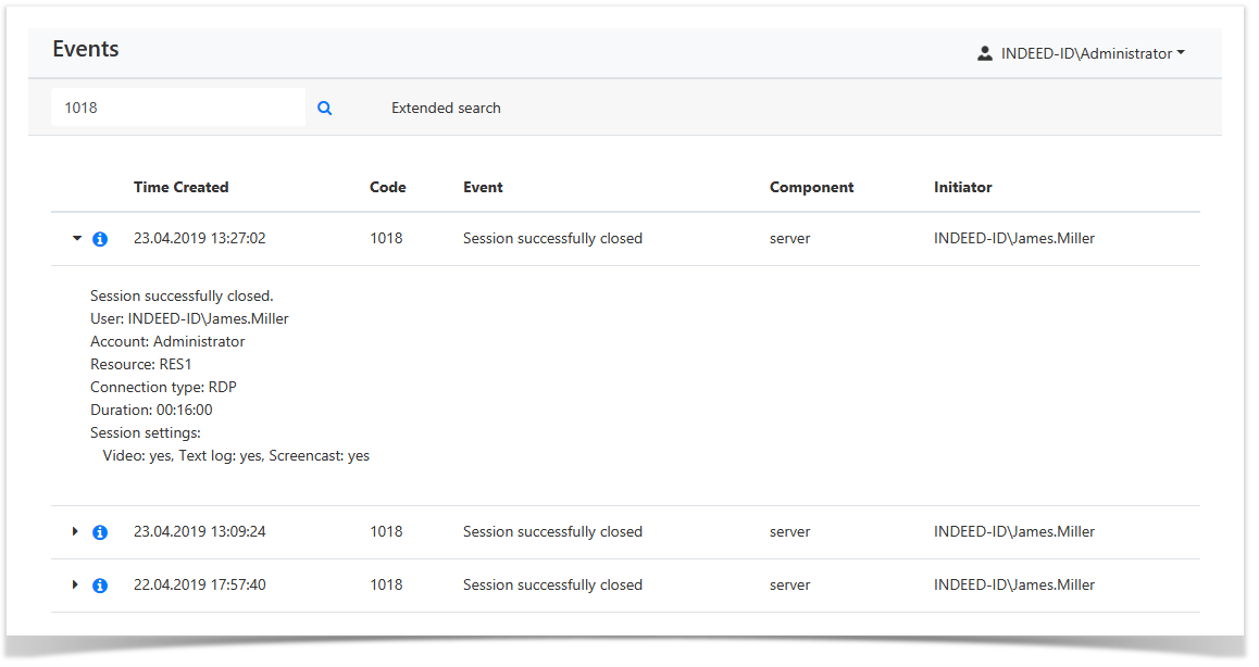 Введите в строку поиска Код события, Компонент или Имя инициатора полностью или частично.
