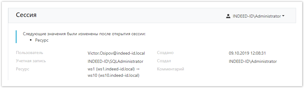 - Ресурс - ресурс, на котором была открыта RDP, SSH или web-сессия от имени учётной записи.