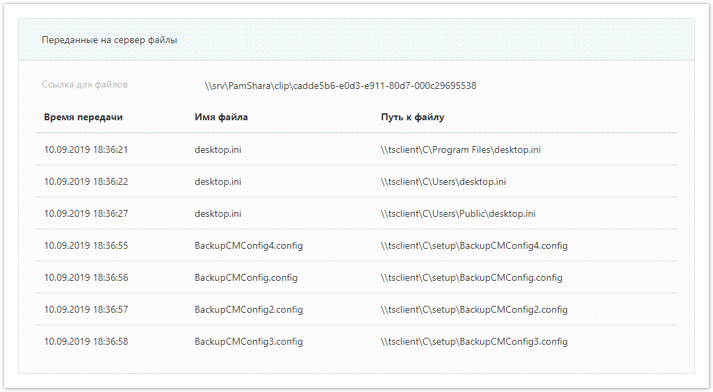 В секции отображается список сохранённых файлов которые пользователь скопировал на целевой ресурс.