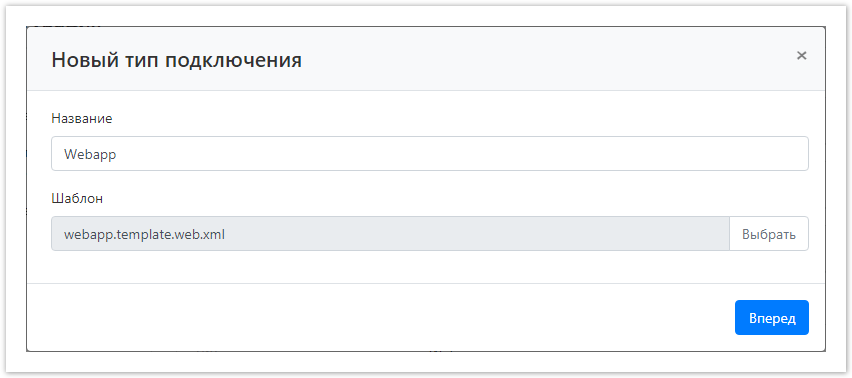 1. Нажмите Добавить, заполните поле Название, выберите шаблон web-приложения и нажмите Вперёд.