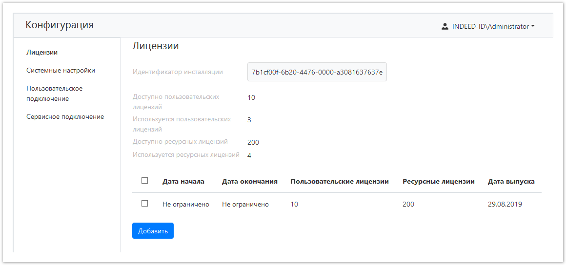 • Идентификатор инсталляции - уникальный код инсталляции, необходим для формирования лицензии.