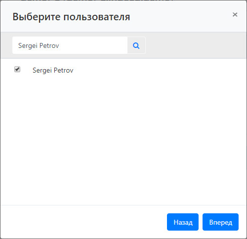 Выберите пользователя для которого будет разрешен доступ на ресурс от имени учётной записи выбранной в пункте 1. Выполните поиск, отметьте флажком и нажмите Вперёд.