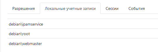 Учётная запись отобразится на вкладке Локальные учётные записи ресурса и может быть использована для создания разрешения.