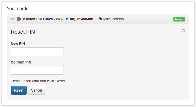If a user forgot the PIN code for his/her card and locked it, the he or she can reset the PIN code and define a new one. The card is then unlocked.