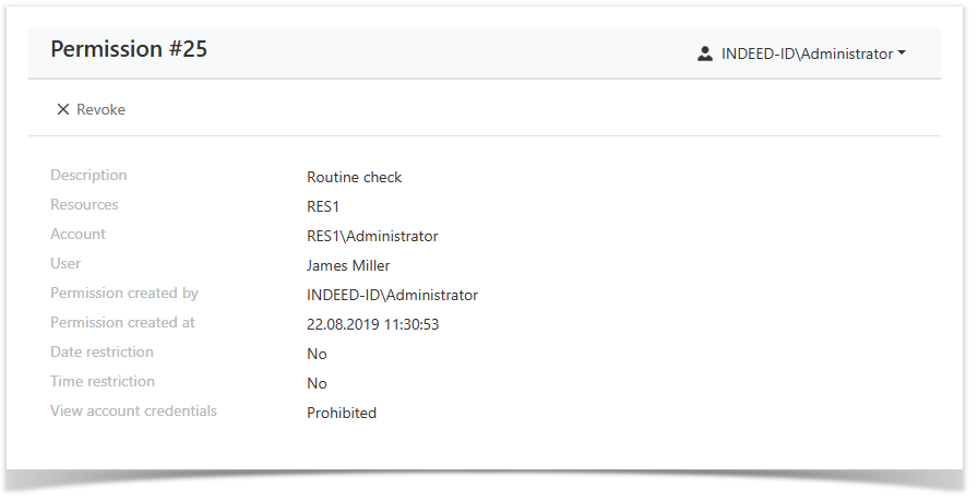 - Учётная запись - учётная запись, которая используется для открытия RDP, SSH или web-сессии на ресурсах указанных в разрешении.
