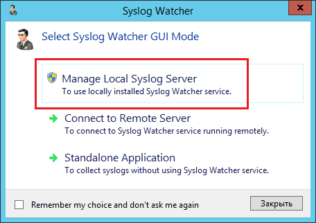 - Run Syslog Watcher and select "Manage Local Syslog Server” item.