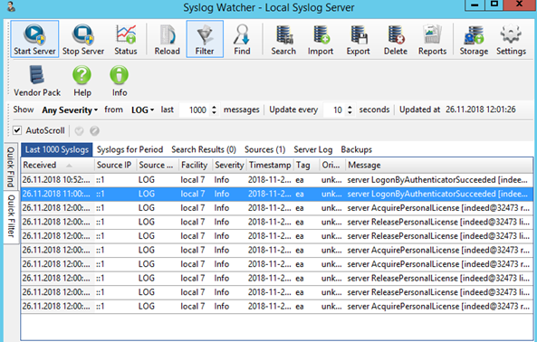 Indeed AM Log Server supports sys-log format. You can use any server that supports the format as well. Below is an example of configuring the sys-log server named Syslog Watcher v4.8.6.