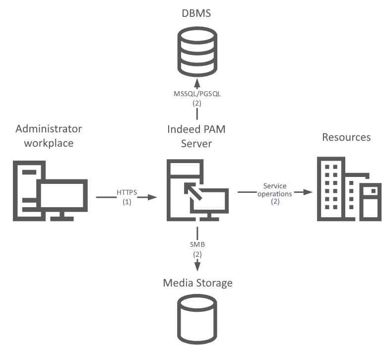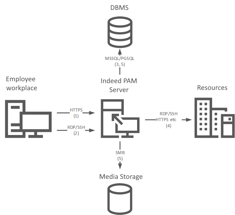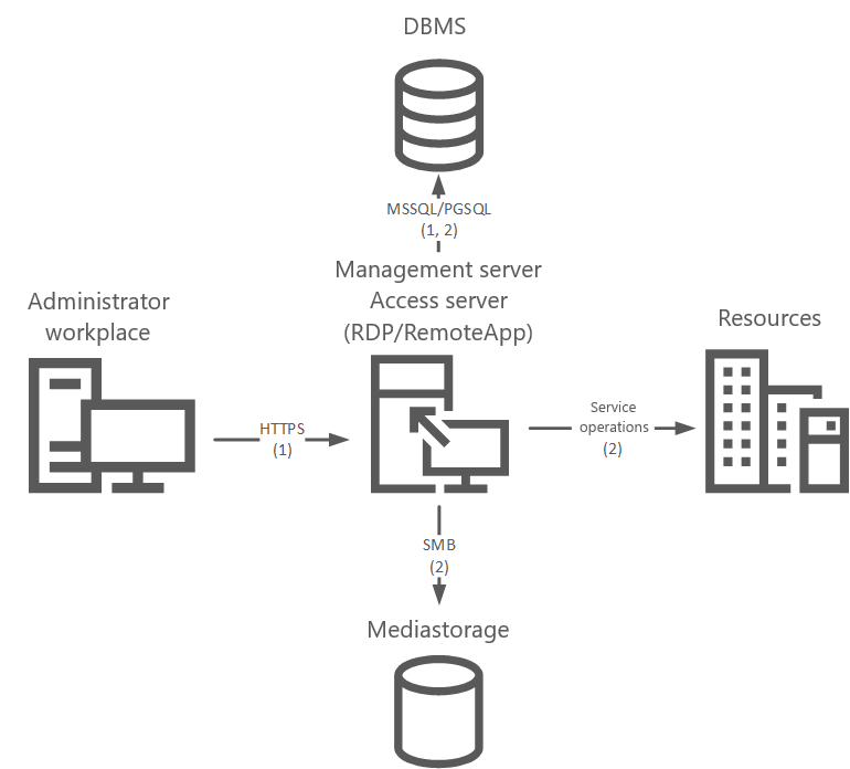 1. From (1) To (1, 2) 2. From PAM To Management server Access server (RDP/RemoteApp) | ||