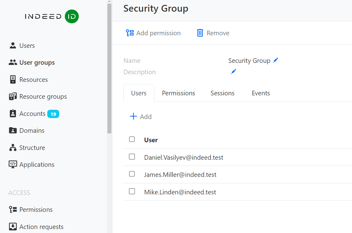 Viewing Information about the Current Sessions within the User Group and Events of the Axidian Privilege