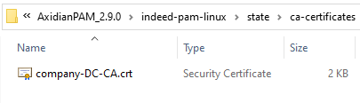 Go to axidian-pam-linux\state\certs and create a separate folder for the management server. Name it with the FQDN of the management server.