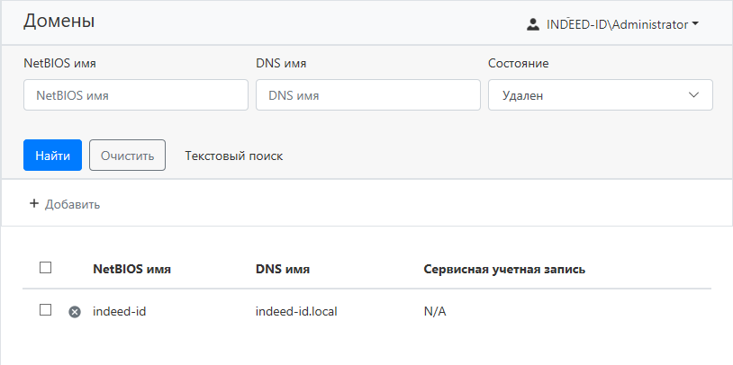Перед удалением домена необходимо удалить из Indeed PAM все доменные учётные записи доступа, которые были добавлены. |