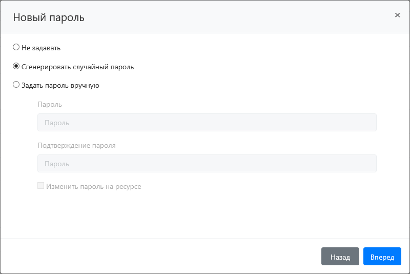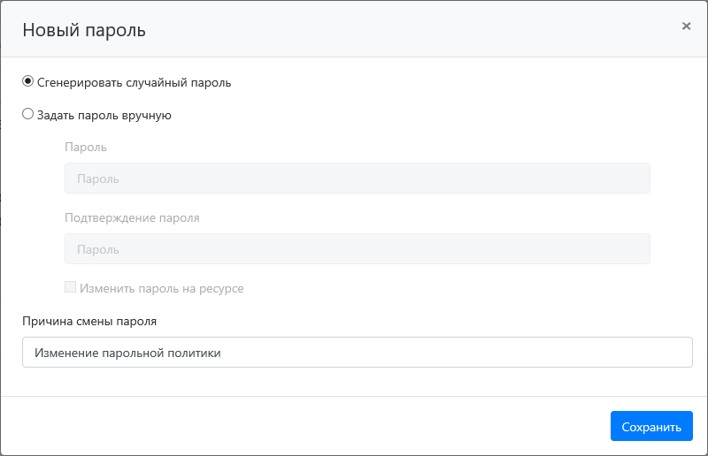 Задать пароль вручную + Изменить пароль на ресурсе