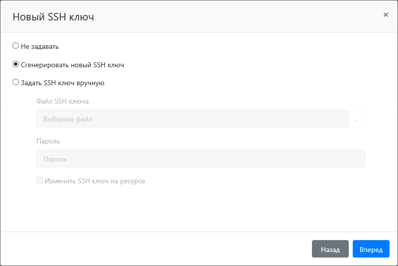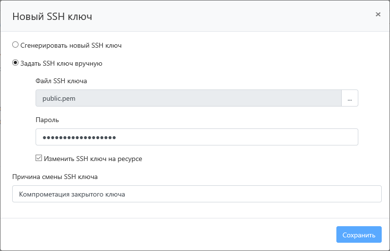 Задать SSH ключ вручную + Изменить SSH ключ на ресурсе