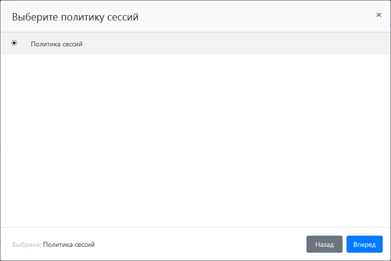 Если политика сессий, которая действовала на учётную запись была удалена, то после выбора точки восстановления необходимо указать новую политику сессий. |