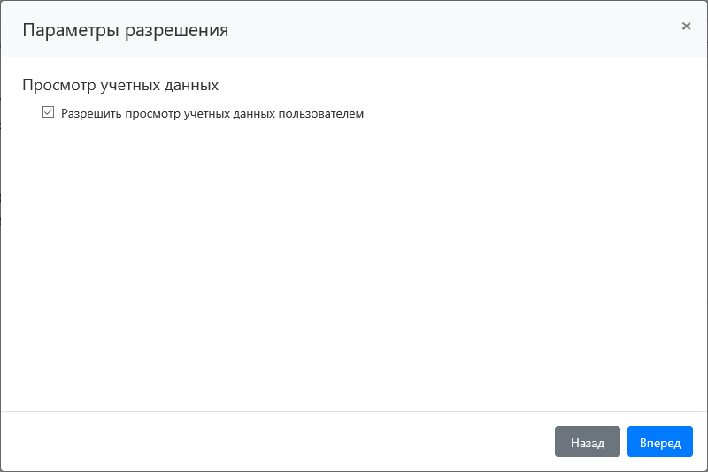 Если пользователь должен иметь право просматривать пароль учётной записи доступа, отметьте опцию Разрешить просмотр пароля пользователем.