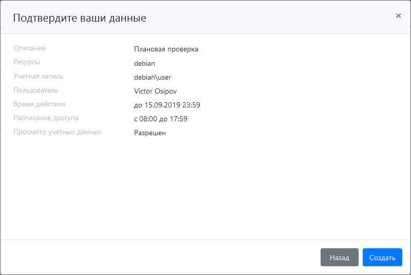Разрешения дают право на открытие RDP, SSH или web-сессий. Разрешение может быть выдано как из профиля учётной записи, так и из раздела Разрешения.