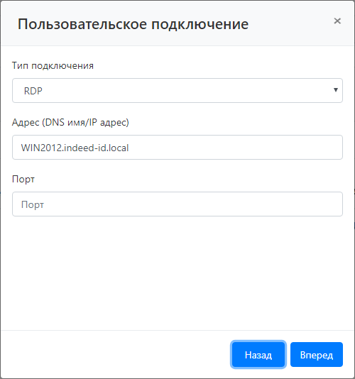 Если для подключения по RDP или SSH используется нестандартный порт, то его необходимо указать в поле Порт.