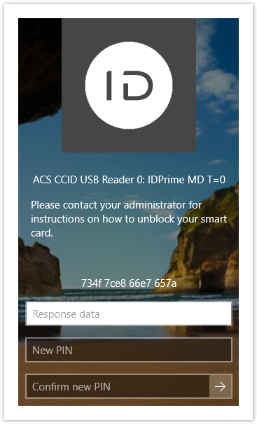 When the number of PIN code input attempts is exceeded, the user receives a message that his/her card is locked. Along with that, the user receives a unique 16-character request code. The user has to communicate with the system administrator (by phone, for instance), authenticate his/her identity by answering the security questions and tell the received request code.