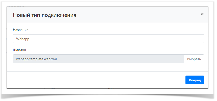 Нажмите Добавить, заполните поле Название, выберите шаблон web-приложения и нажмите Вперёд.