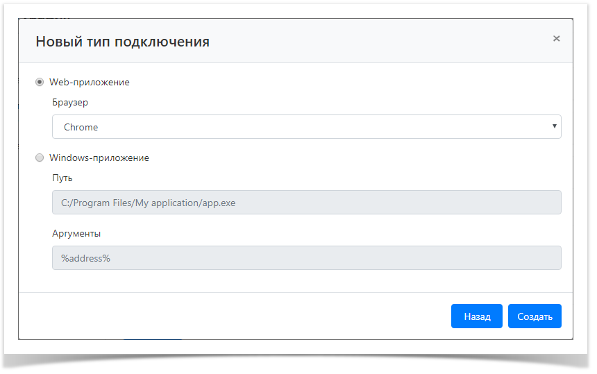 Добавление пользовательского подключения с типом Web-приложение