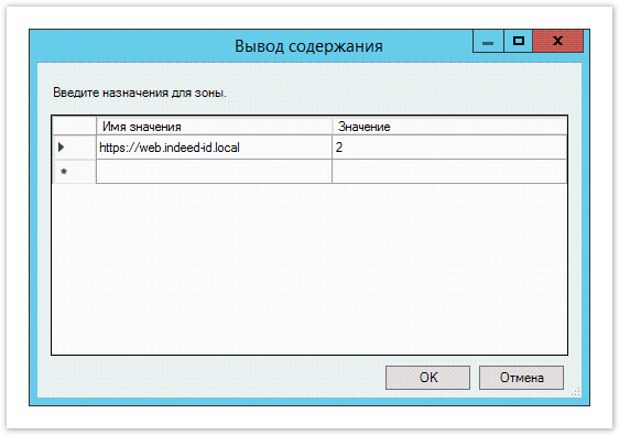 - В поле Имя значения (Value name) введите URL узла, на котором расположено веб приложение, в поле Значение (Value) введите 2 и сохраните изменения.