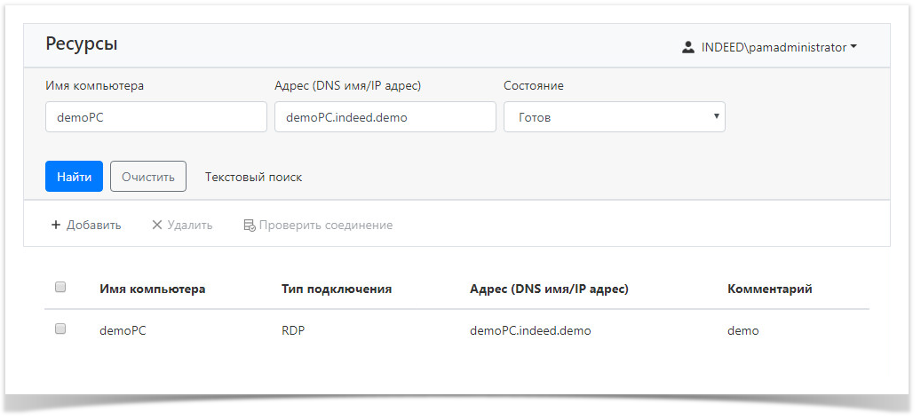 В Indeed PAM реализованы три типа пользовательских подключений:- RDP - локальные и доменные учёные записи доступа смогут открывать RDP сессии на ресурсе.