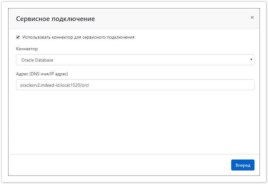 - Настройка сервисного подключения с типом СУБД Oracle Database: