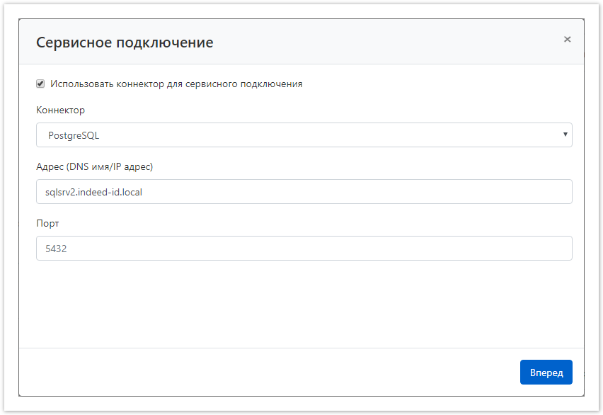 - Настройка сервисного подключения с типами СУБД PostgreSQL: