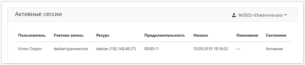 - Состояние - отображает текущее состояние сессии (Активная или завершенная).