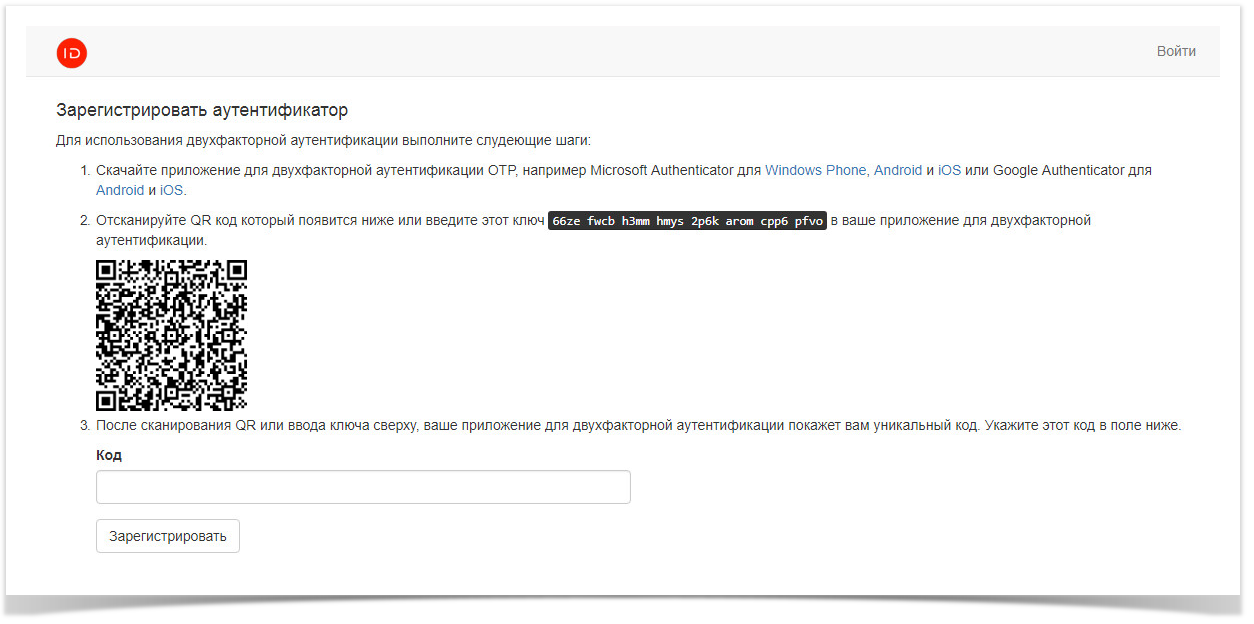 Для работы с консолью пользователя необходимо обучить аутентификатор. Выполните вход в консоль, если пользователь не имеет аутентификатора, то он будет перенаправлен на IDP для его регистрации:
