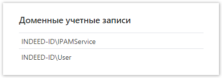 Все добавленные доменные учётные записи отображаются на вкладке Доменные учётные записи.
