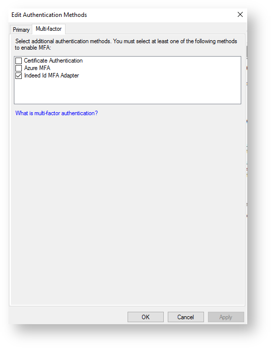 - Select the previously created provider at the “Multi-factor” tab and click “Apply”.