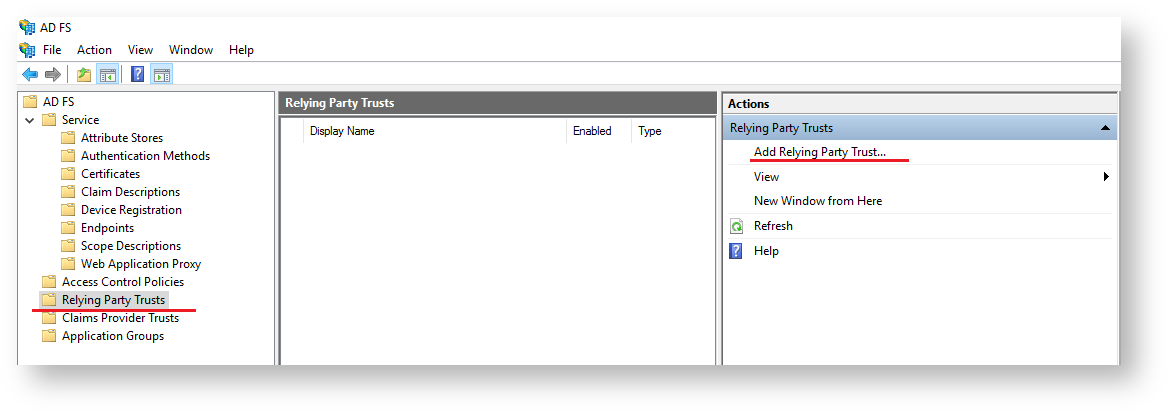 - Open AD FS management console.