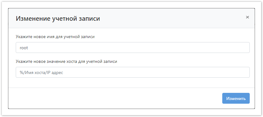 Для подключения к MySQL учётная запись указывается с именем хоста. Для добавления имени хоста к учётной записи MySQL: